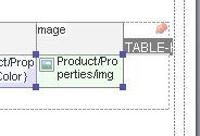 And now you need to make a connection. You need to group the image frame to the correct node of the XML file, which means you connect the frame to the node containing the image information. The complete path from the top of the XML file to that node is Report/ProductGroup/ Product/Properties/img. But this frame is part of the table (that you already grouped to the node Product) which means the first part of the path to the correct node is already determined: Report/ProductGroup/Product/ and only the missing part Properties/img must be considered. Double click the image frame and drag the correct node from the XML tree on the left to the right editor window as you did with the text frames. After that, make the cell a little bigger by dragging the lower rim down:
