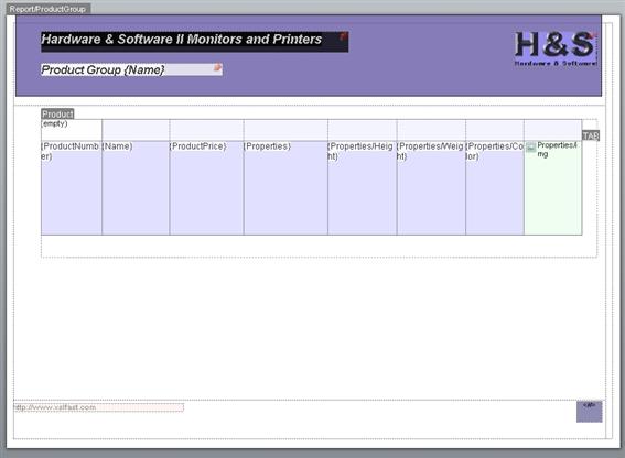 This is the first connection you established between the sheet and the XML file. It also serves as a page breaking marker which means that XSLfast will create a new page for every product group contained in the XML file. You will see the effect during the course of this example.